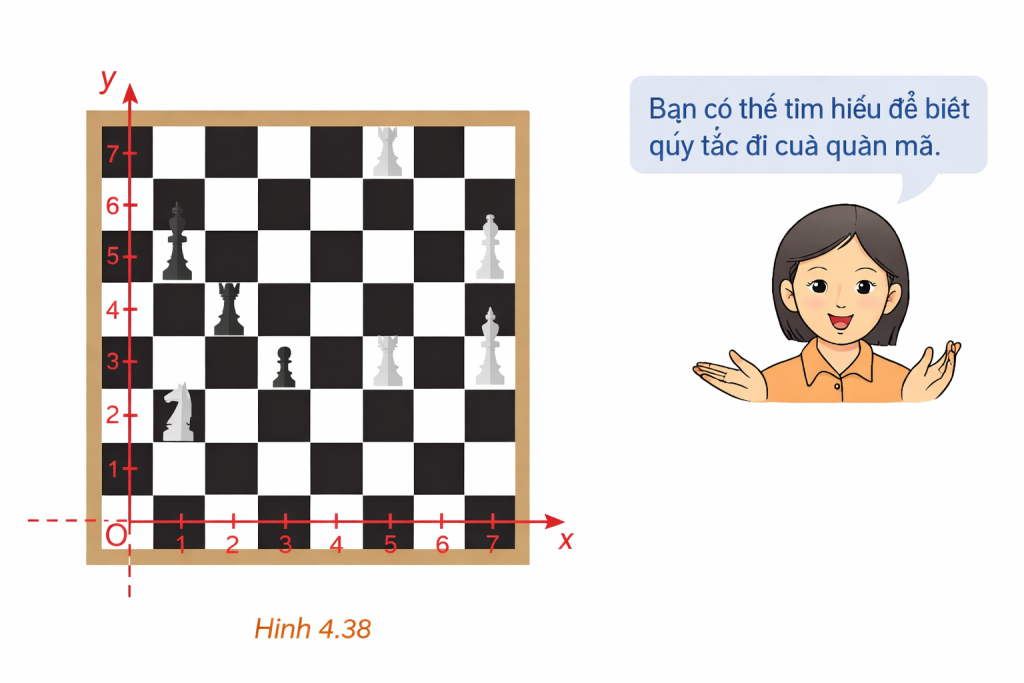 4.20. Trong Hình 4.38, quân mã đang ở vị trí có tọa độ $(1; 2)$. Hỏi sau một nước đi, quân mã có thể đến những vị trí nào?