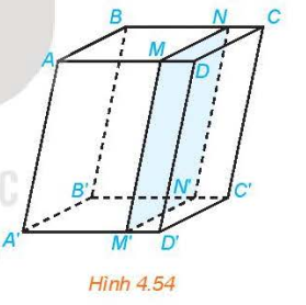 4.27. Cho hình hộp $ABCD.A’B’C’D’$. Một mặt phẳng song song với mặt bên $(ABB’A’)$ của hình hộp và cắt các cạnh $AD, BC, A’D’, B’C’$ lần lượt tại $M, N, M’, N’$ (H.4.54). Chứng minh rằng $ABNM.A’B’N’M’$ là hình hộp.
