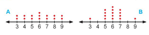 5.12. Cho hai biểu đồ chấm điểm biểu diễn hai mẫu số liệu A, B như sau: