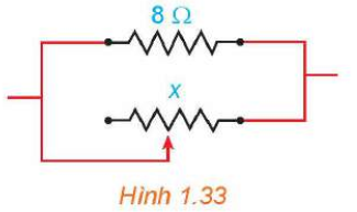 Giả sử một điện trở $8 \ \Omega$ được mắc song song với một biến trở như Hình 1.33. Nếu điện trở đó được kí hiệu là $x \ (\Omega)$ thì điện trở tương đương $R$ là hàm số của $x$. Vẽ đồ thị của hàm số $y = R(x), x > 0$ và dựa vào đồ thị đã vẽ, hãy cho biết: