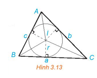 Hoạt động 4 (HĐ4): Cho tam giác $ABC$ có $I$ là tâm đường tròn nội tiếp tam giác. Gọi $r$ là bán kính đường tròn nội tiếp, và độ dài các cạnh đối diện với các đỉnh $A, B, C$ lần lượt là $a, b, c$.