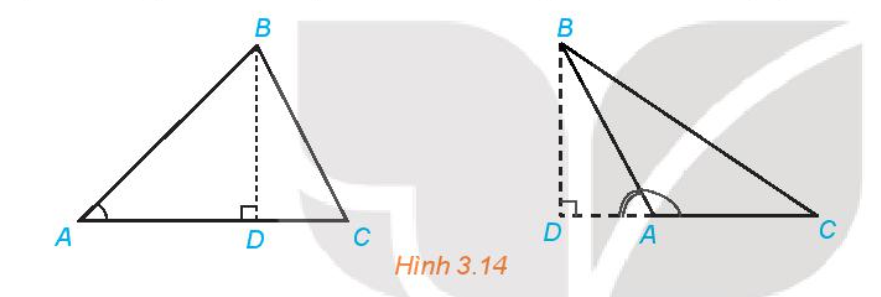 Trường hợp 1: Góc $A$ nhọn (Hình 3.14 bên trái)