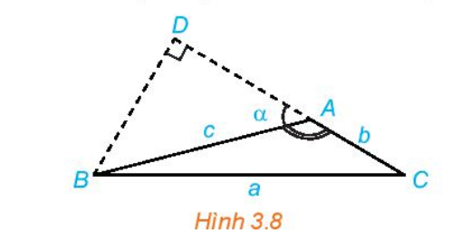 Trường hợp 2: Góc $A$ tù (Hình 3.14 bên phải)