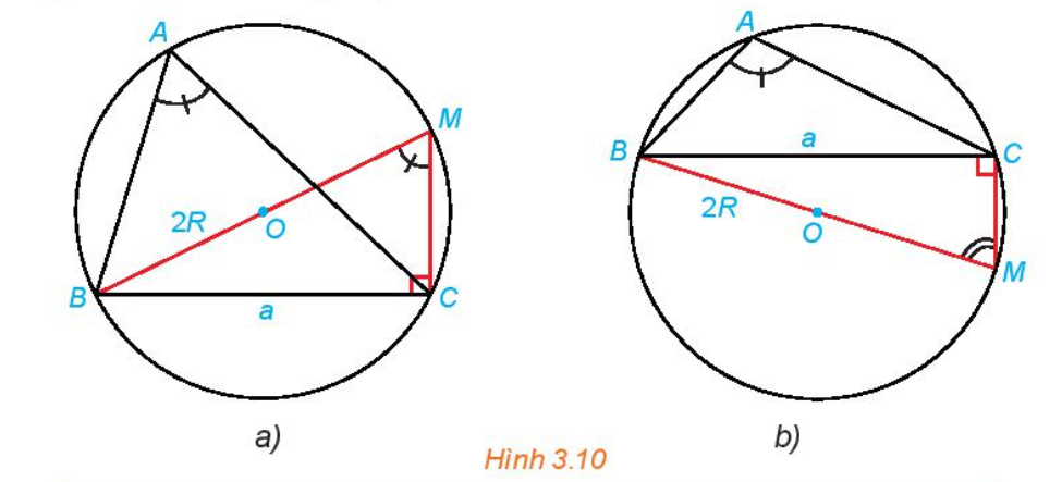Vì $\sin A = \sin M$, suy ra $\sin A = \frac{a}{2R}$.