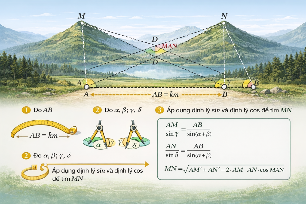 Bước 4: Tính khoảng cách giữa hai đỉnh núi ($MN$)